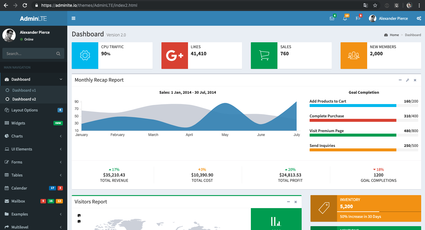 なので、今回は私のようなサーバーサイドのエンジニアでもそこそこいいデザインの管理画面が作れるフレームワークのAdminLTE(今回はAdminLTE2)を利用して開発を進めました。