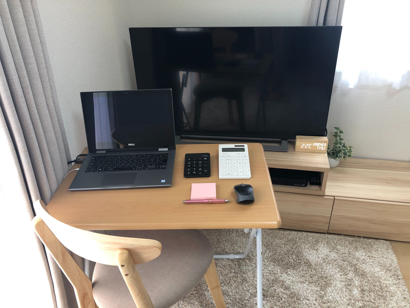 プ●ステにつながっていたHDMI端子をPCにつなげてみたらテレビがモニター代わりになりました(笑)これで不安は解消、家でも立派なオフィス環境が整いました!