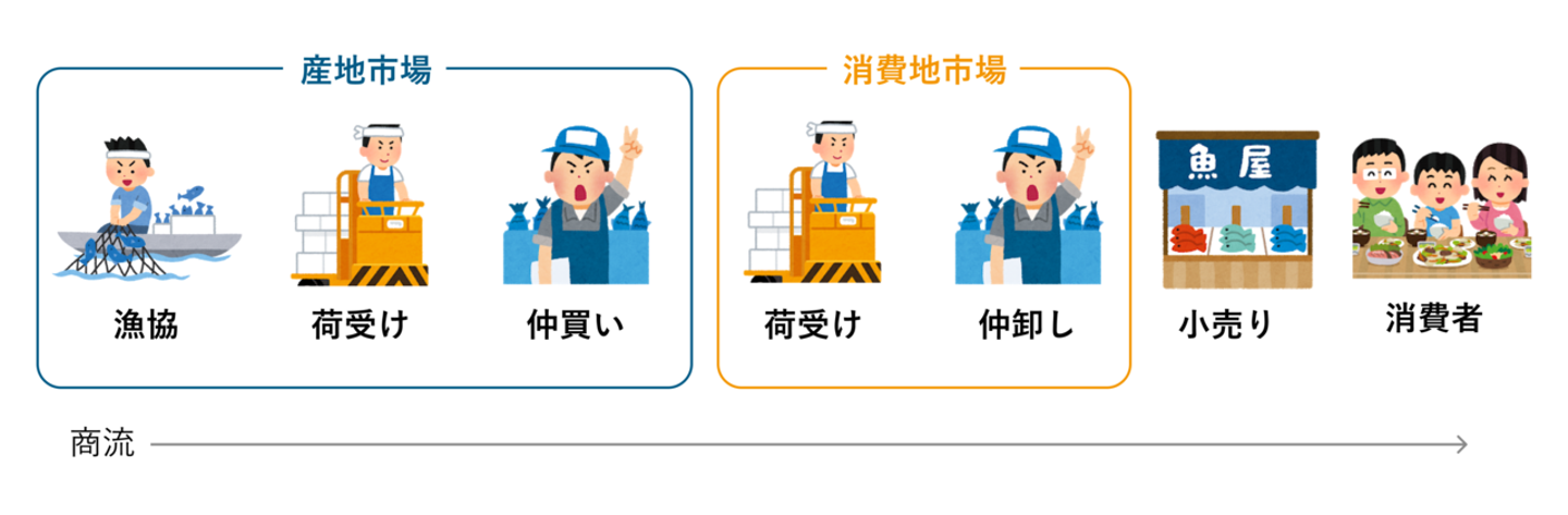 ウーオがいる水産業において、2種類の市場があり、ウーオ社内では産地(産地市場)と消費地(消費地市場)と呼んでいます。おそらく読者の皆さんは市場と言われたら豊洲(または築地)を想像することが多いと思いますが、これは消費地市場を指しています。