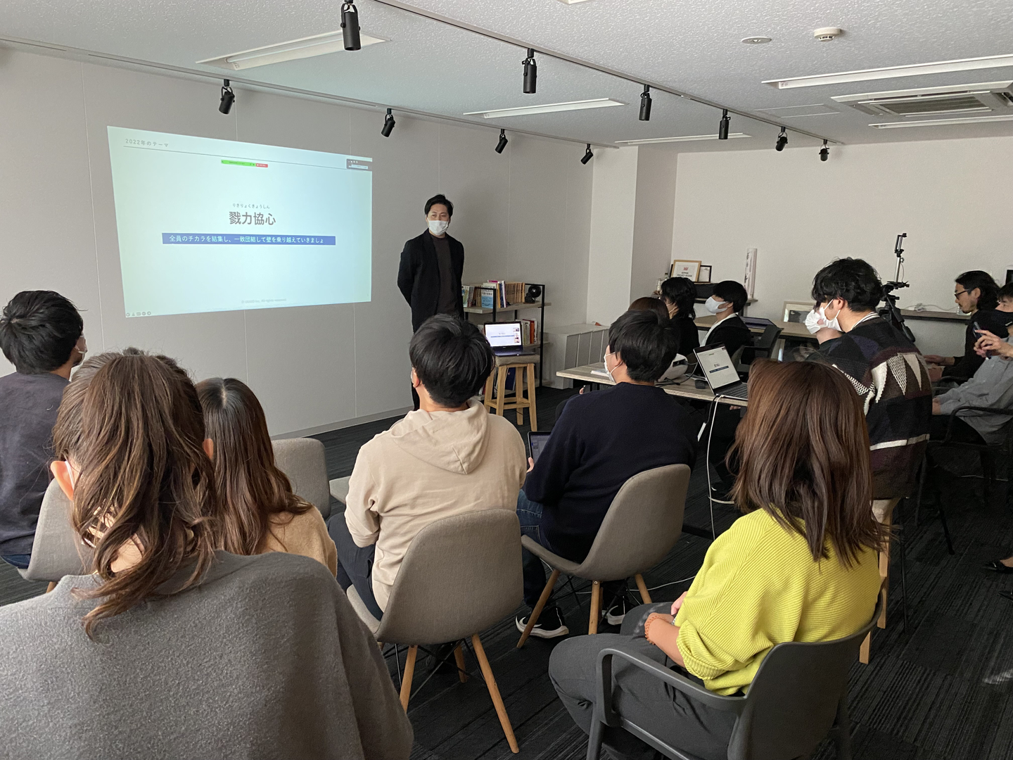 ↑フルリモートメンバーも一堂に会した年始共有会の様子