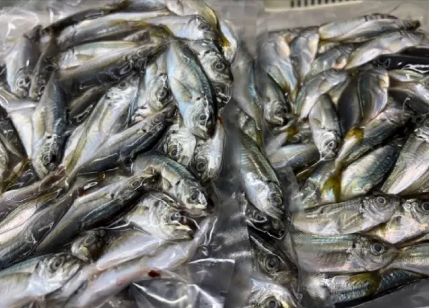 相模湾沿岸で集められた今朝獲れのものを真空パックし、瞬間凍結した豆アジです。