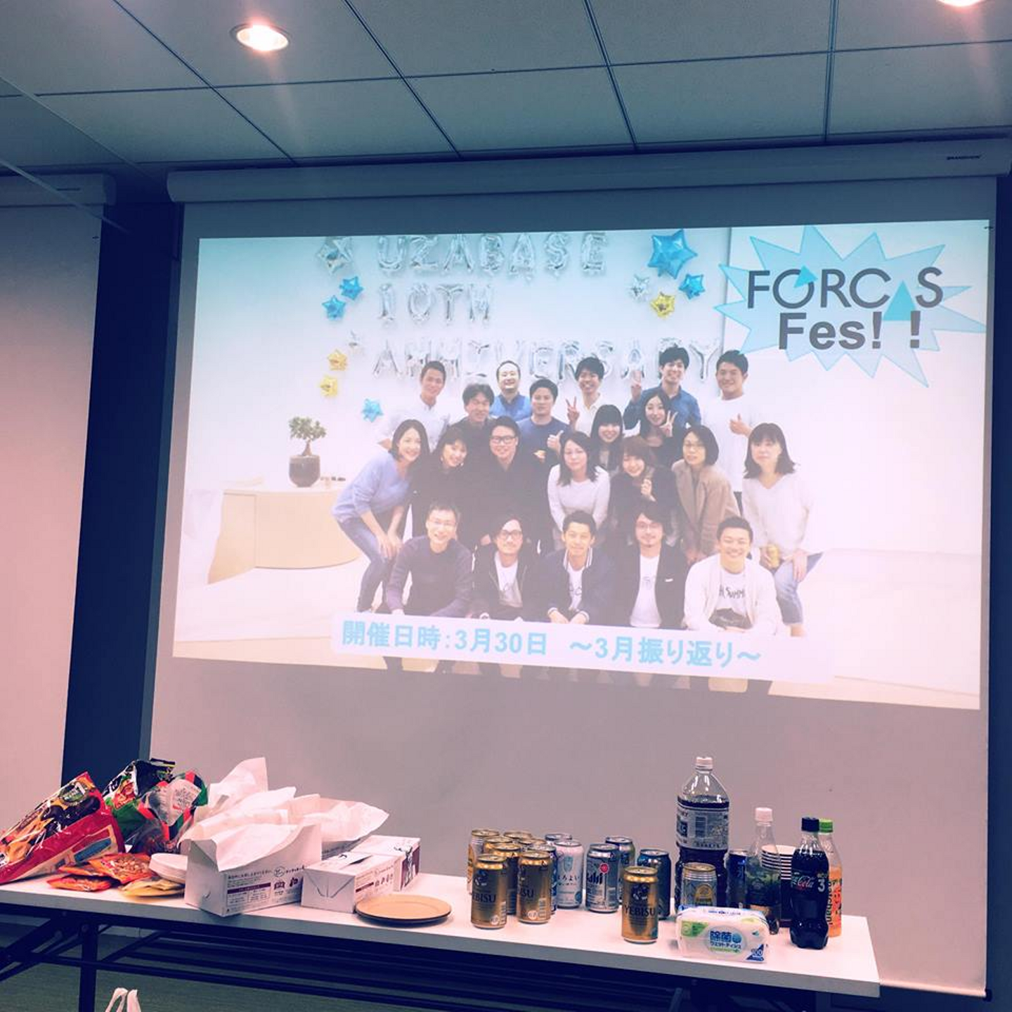 「FORCAS Fes!!」とは、毎月1回、前月の振り返りを社員全員でする会。普段なかなか全員で顔を合わせることがないメンバーが多いなかでの、いわば全社会議です。名前に Fes とついているぐらいなので、堅苦しさ一切なしの楽しい会です!