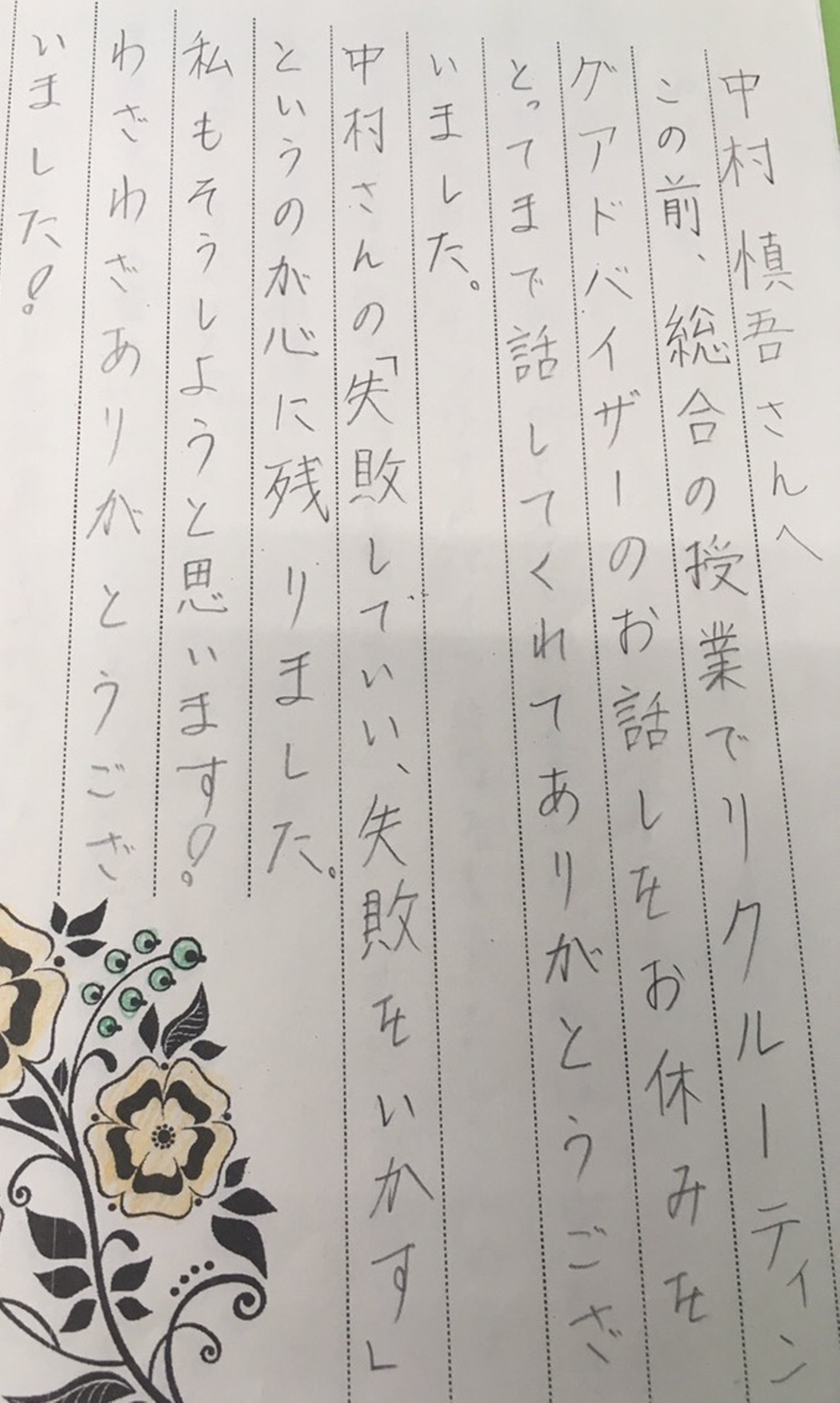 中村は、自身の経験を踏まえて沢山チャレンジして失敗を繰り返すことでどんどん自分が成長して行くよと話したとのことです。