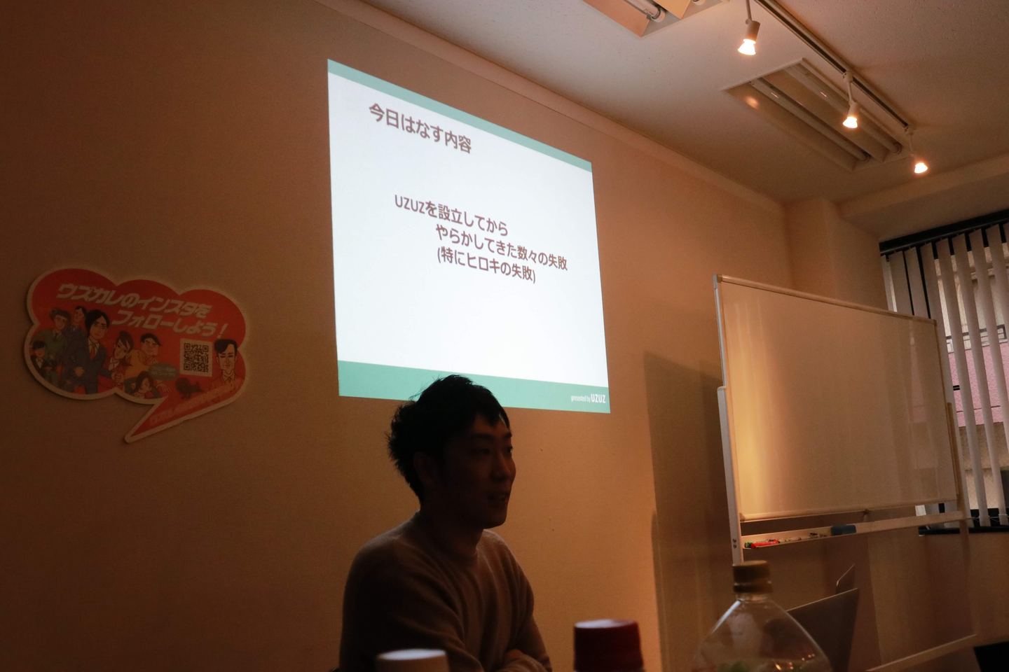 そんな岡本から「UZUZを設立してから、やらかしてきた数々の失敗」というテーマでみんなに向けて話してもらいました。