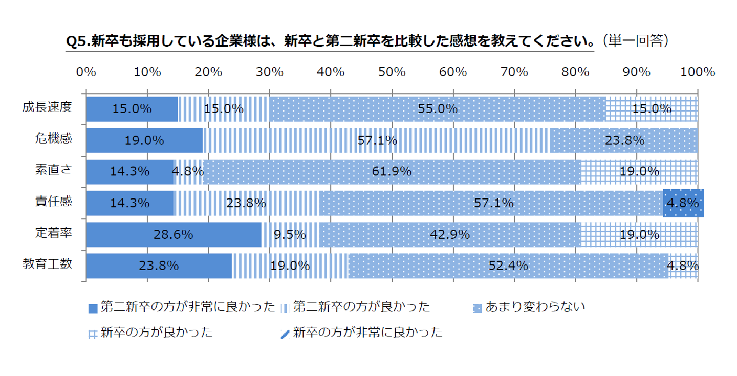 Q5.新卒も採用している企業様は、新卒と第二新卒を比較した感想を教えてください。(単一回答)