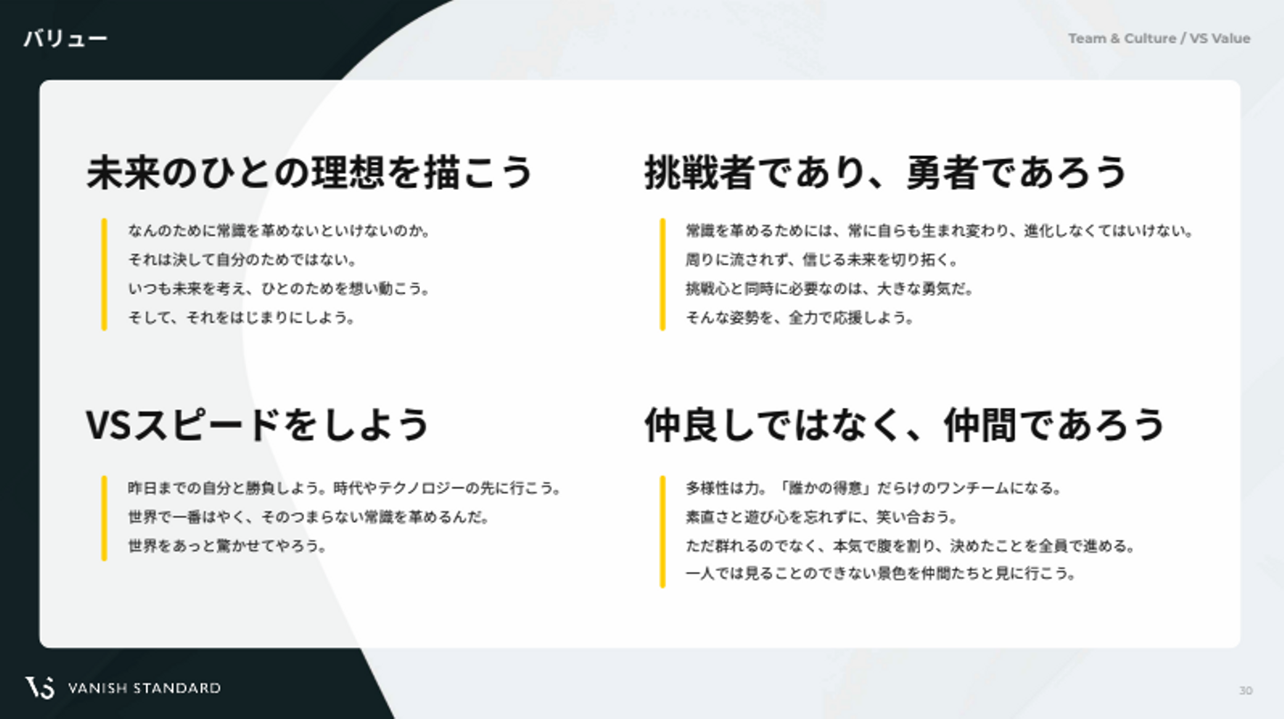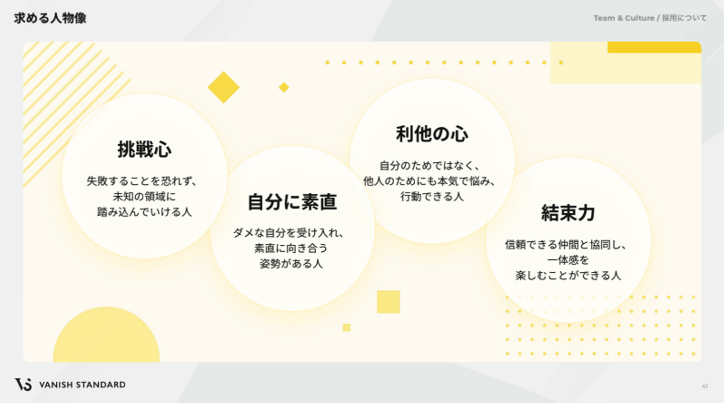 ーー採用ポリシーの中で、VSらしさを象徴している項目の一つが「求める人物像」ですよね。こちらはどのようにして生まれたのでしょうか?