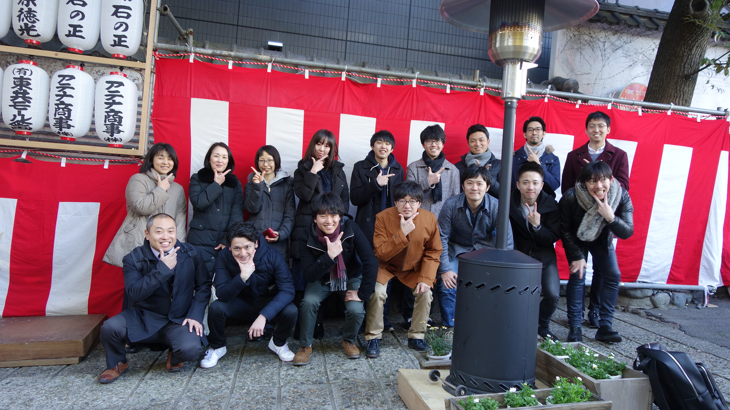 みんなでお参りした後は、代表 河野から「超えられるかな?くらいの成長ではなく、大いなる飛躍を。みんなで頑張りましょう」。取締役 篠原からは「今年は組織化を進める年」と。