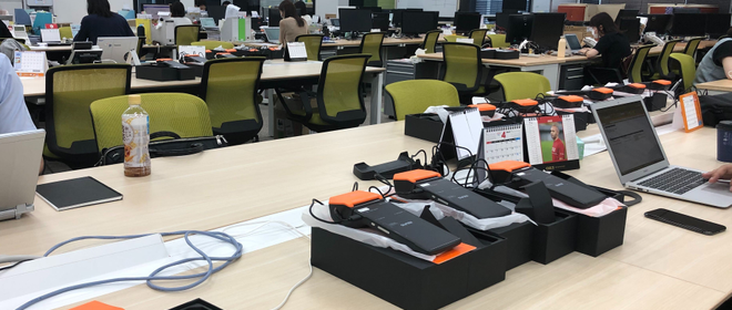 少しわかりずらいのですが、手前の席と奥の見えないところの席を増設しました!当社では、システムと管理部以外は、フリーアドレスなので、好きな席に座れます。システムや管理部門のみんなも、たまにフリーアドレスに座ったりもして、かなり自由ですよ~