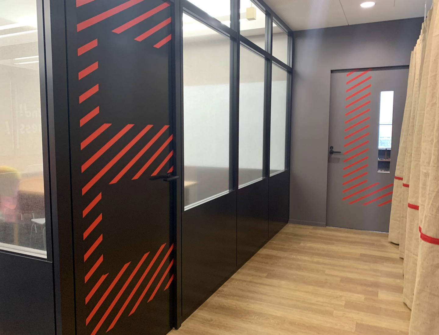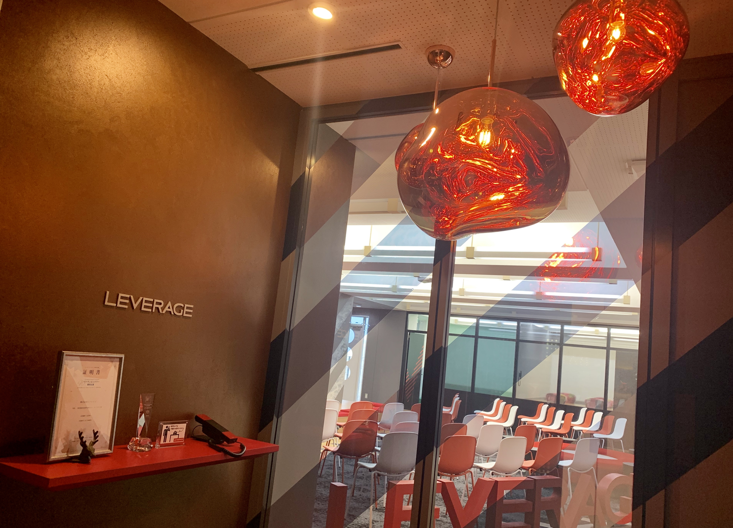 ミーティングスペースは3部屋、レバレッジの「L」「E」「V」