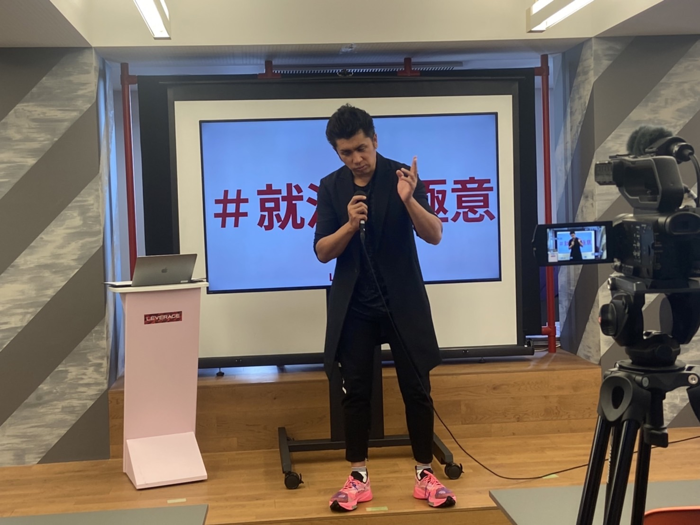 平日の日中、目の前に講演を聞くお客様がいないにも関わらず、画面の向こうにいる視聴者に向けて講演を行いました。