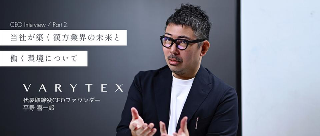 今回は、VARYTEX株式会社の代表平野にインタビュー形式で創設から今日までのストーリーや創業に込めた想い、そして弊社が描いていく漢方の未来について語っていただきました。漢方や医療業界、ヘルステックにご興味のある方は是非、御覧ください!1. まずは、VARYTEX株式会社を設立した背景を教えてください。―漢方の‘本当の価値’が理解されていない―きっかけは漢方業界が抱える課題を解決したいという思いからでした。ツムラで働いていた時、冷えやだるさ、イライラなど病気とは診断されないような心身の不調が漢方専門医の治療で救われる場面をたくさん見てきました。ところが、医師にとっても、漢方医学を習得する...