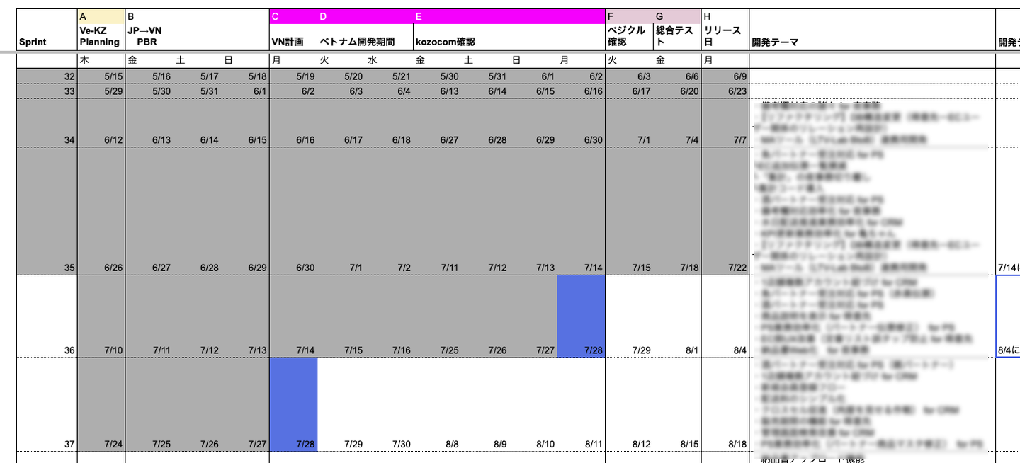 現在は、日本チーム(PM陣)とベトナムチーム(開発陣)という感じで1つのバックログを通じてやりとりをしています。