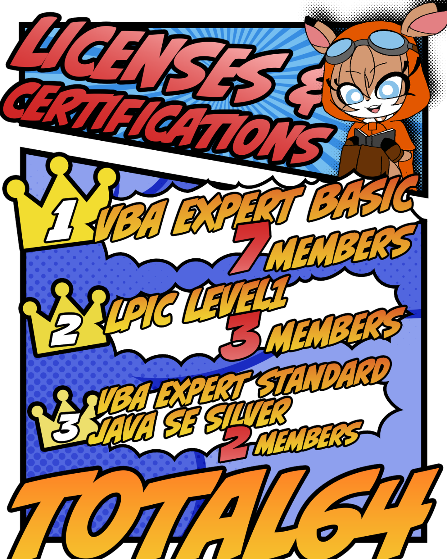 • VBAエキスパート Standard、Java SE Silver:それぞれ2名