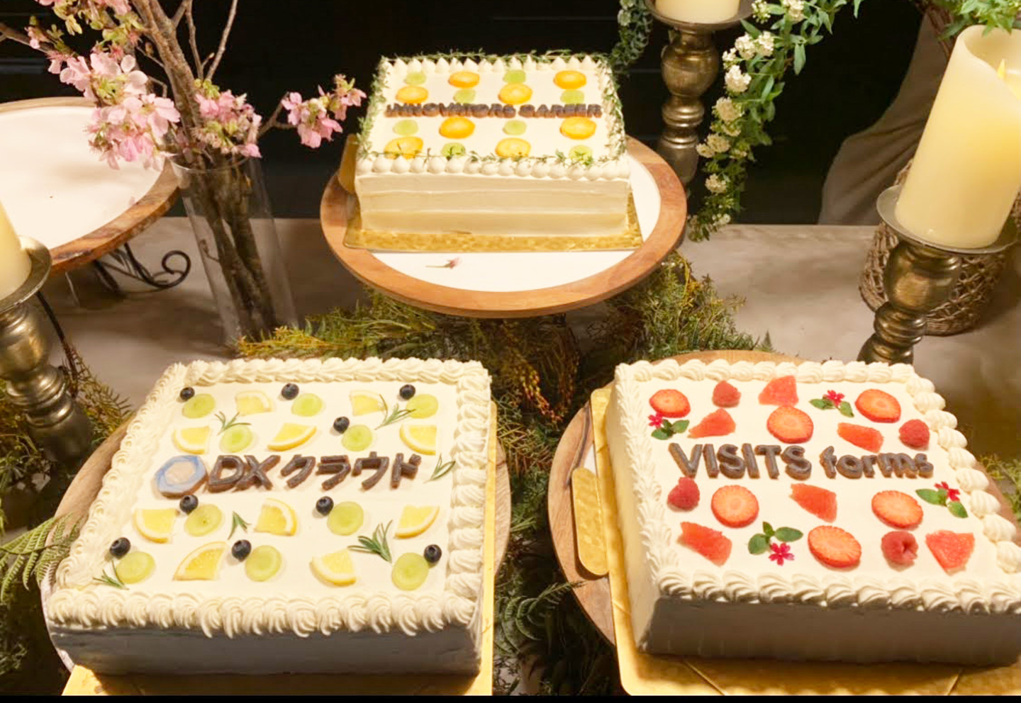今回は3つのプロダクトリリースを祝してプロダクト名の入った3つのケーキも用意。