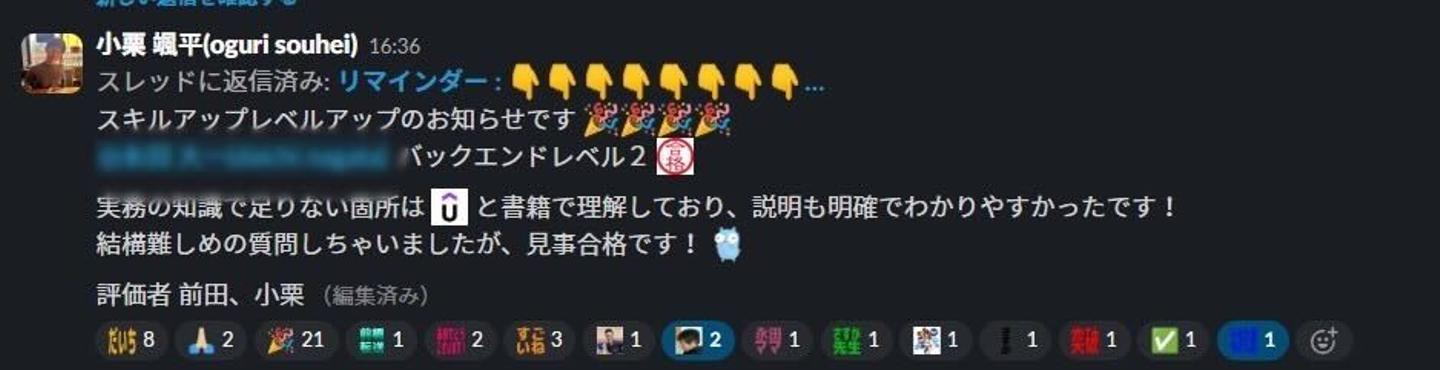 テックリードとして全社の技術力向上を担う発信も積極的にやってくれてるし、期待以上に任せて良かったなと思った!