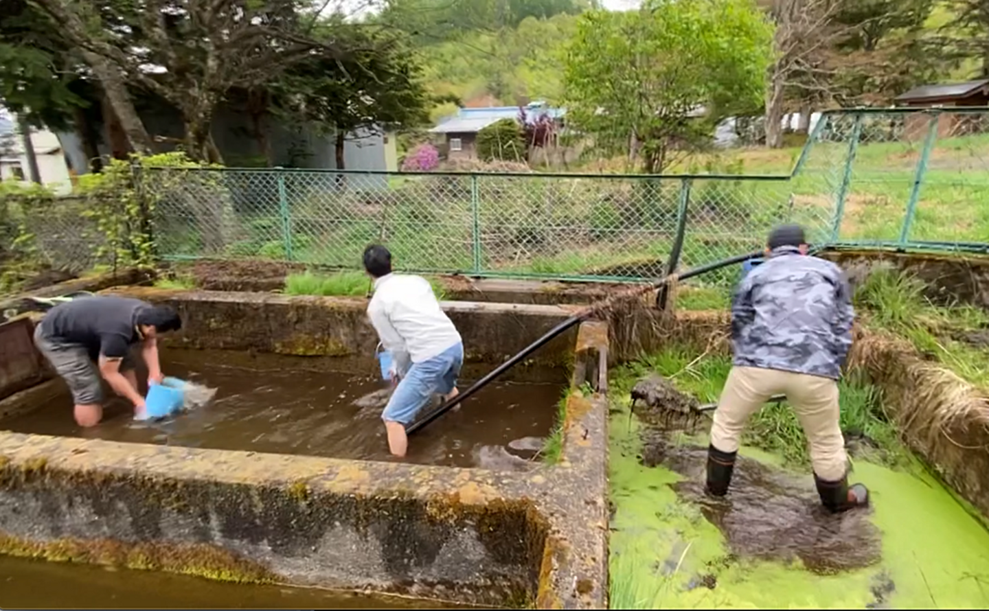 自然と同化した生簀を掃除するという体験自体、ほとんどの人はしないでしょう。