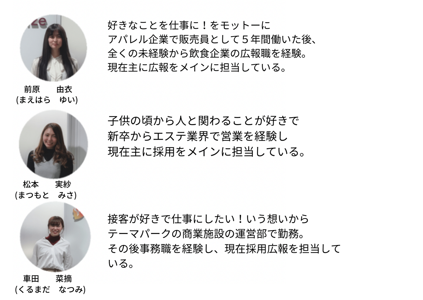 車)二人が言ってくれたように、採用広報チームとしてミッションと経営理念に共感してくれる素敵な仲間をどんどん増やしていきたいね!その為には私達ももっと魅力を伝えられるように頑張らないと!