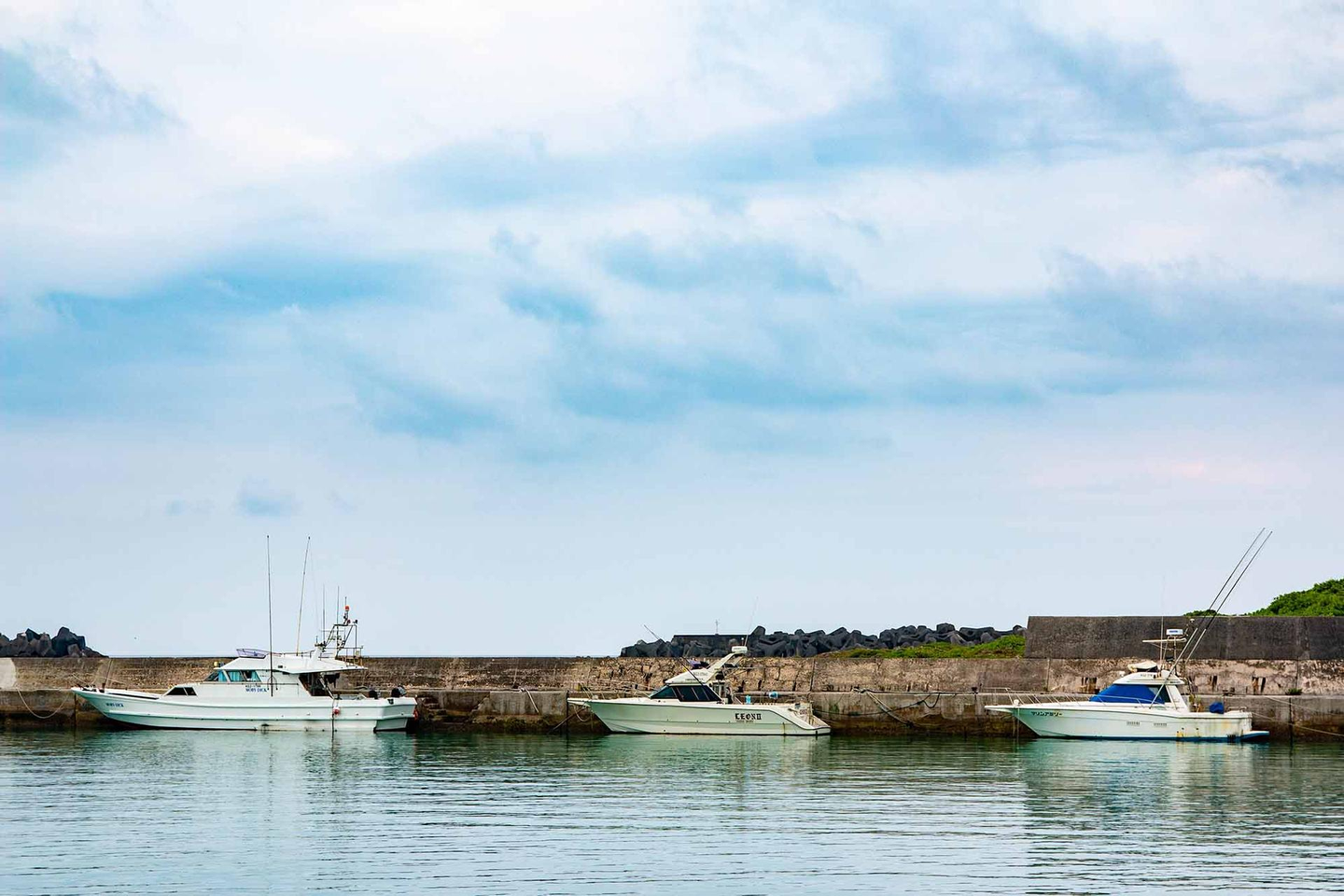 次に、徒歩5分で荒木漁港という港に着くのですが、圧倒的にキレイな海が待ってます。