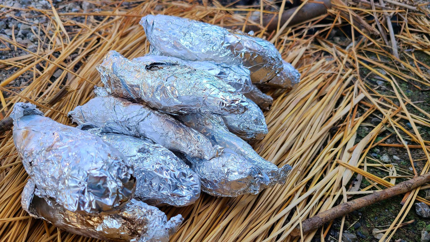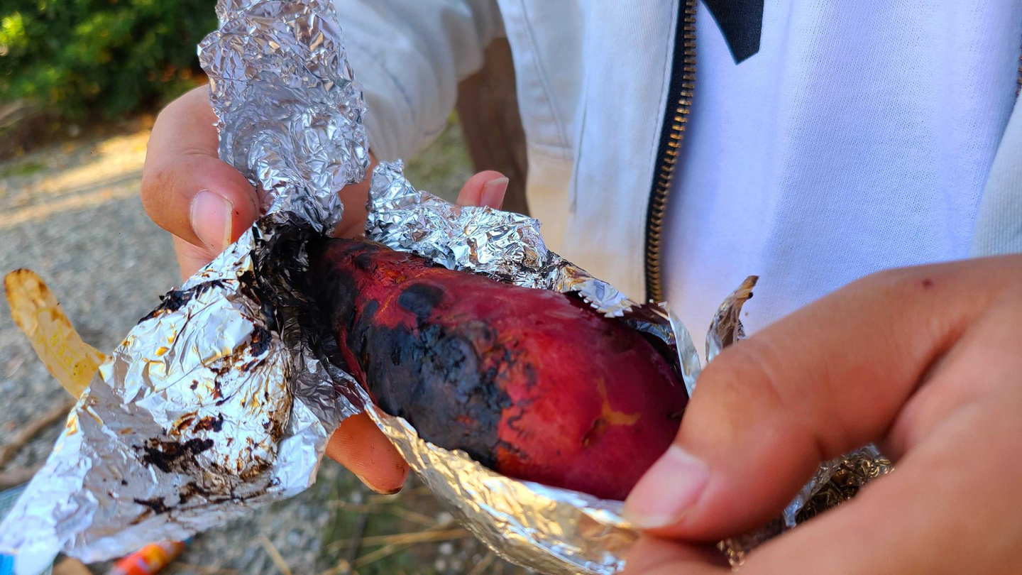 収穫後には、焼き芋にしていただきました。