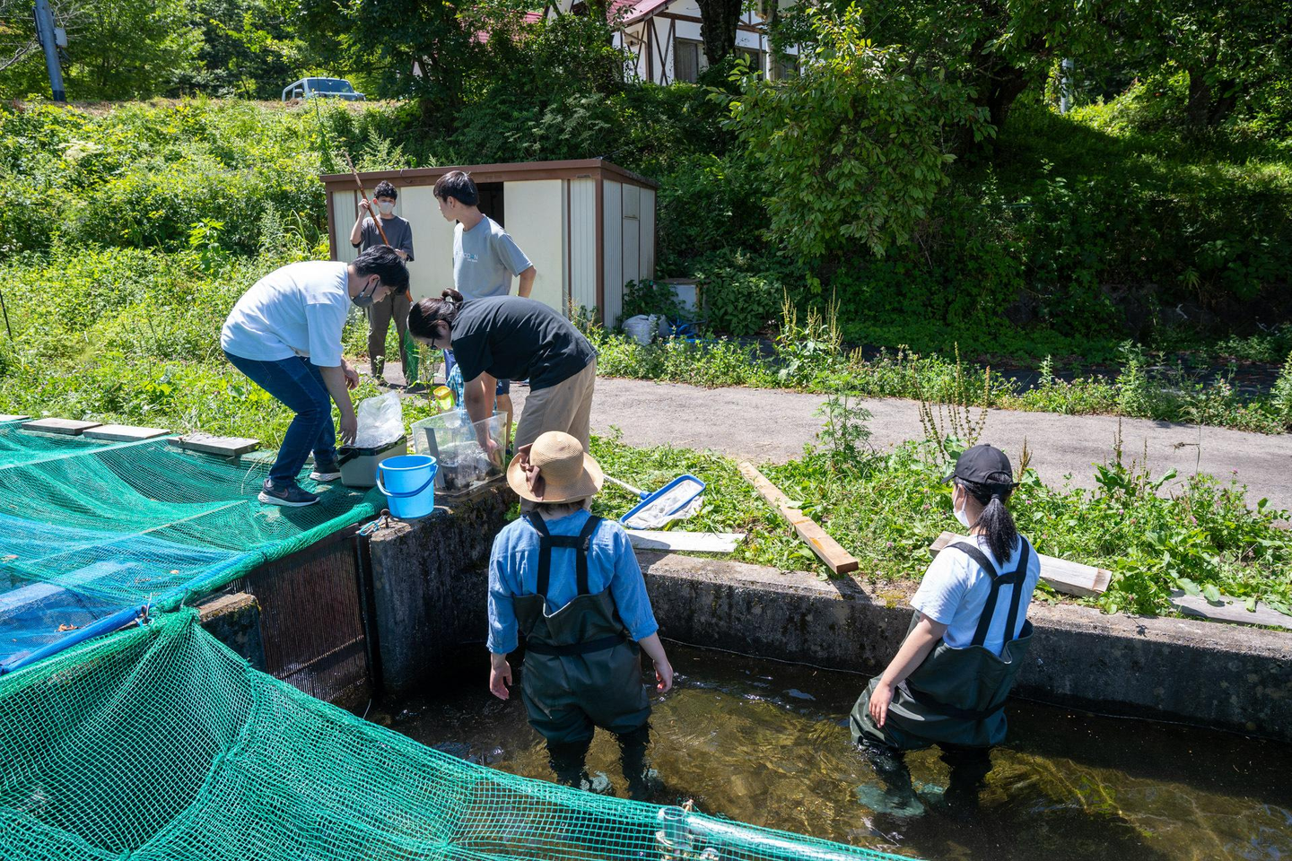 地域の高校生たちと、養殖の現場作業から宣伝のためのPOPづくり、SNS発信、イベント当日のイワナ塩焼き販売までを一本通してやり遂げるという企画で、高校生の皆さんも、こっすーもよくやりきってくれました!