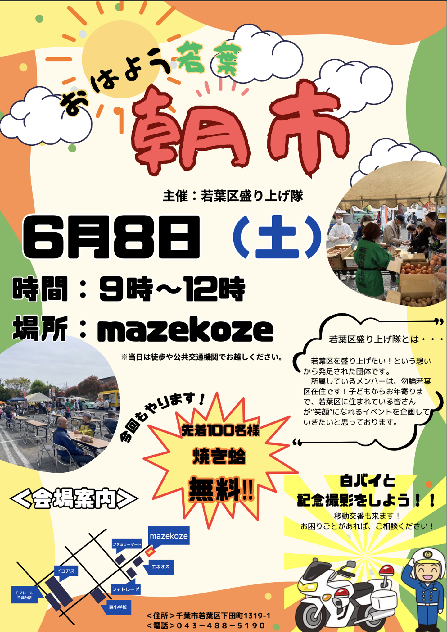 今回、我々は千葉市若葉区にて開催している「おはよう若葉朝市」に参加しました。
