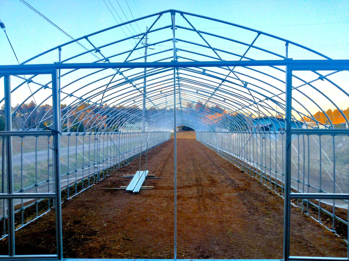 作物をイチゴにしよう!と決定後、まずは一度イチゴを作ってみようということでビニールハウスを建てて、栽培を行いました。