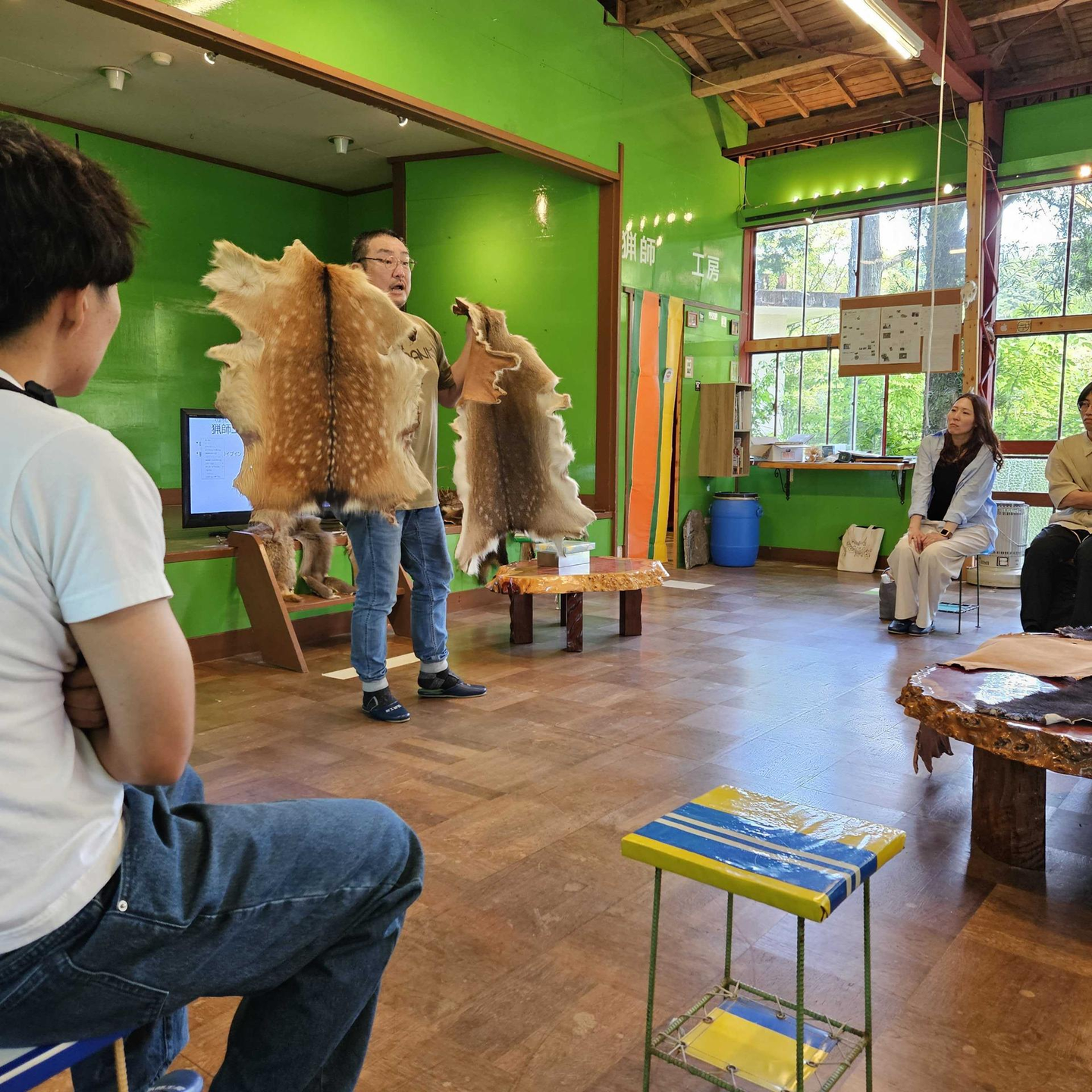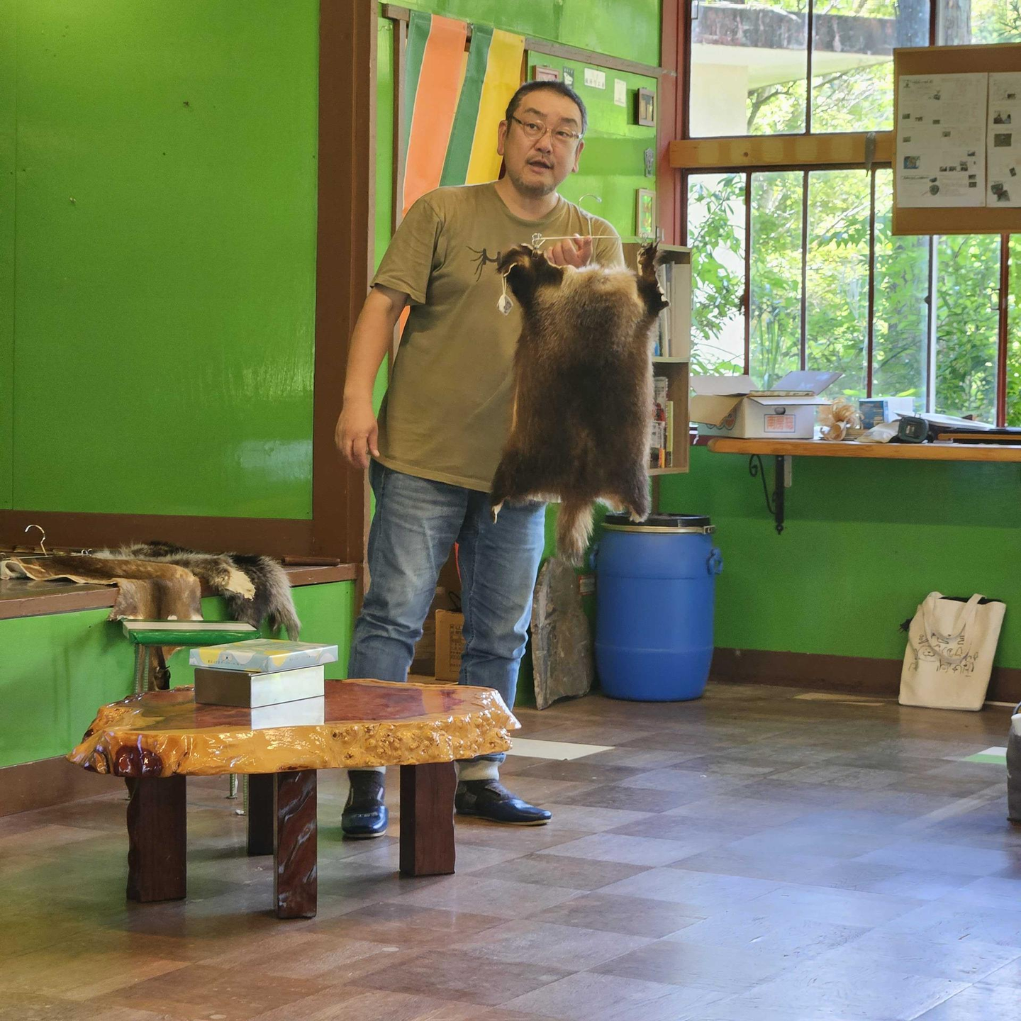 まずは座学で、本物の毛皮を用いた毛皮当てクイズから獣害問題と命に関するお話を伺いました。
