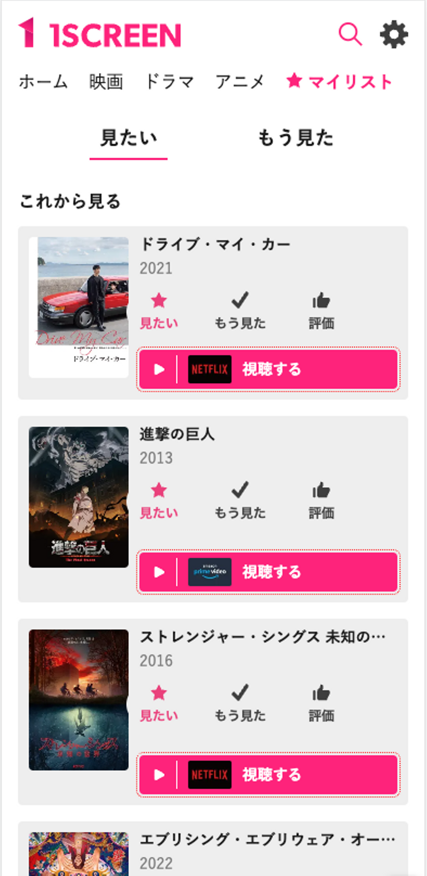 それに加えて、直近で開発をしているのがワンスクリーンです!動画配信サービスがテレビより当たり前のように毎日使うものになると考えており、「今日は何を見ようかな」「友達に教えてもらったあのアニメはどこで見れるのかな」なんて時に使うサービスを目指して運営しています。