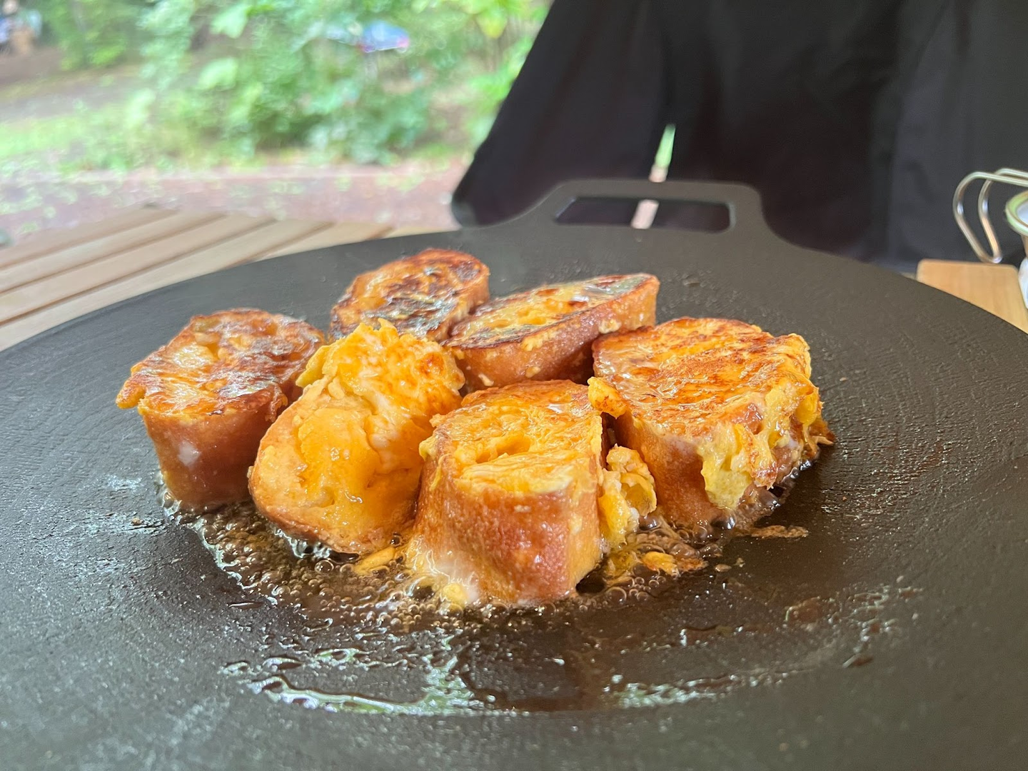 まず重さ1kgと片手で持てるほど軽量な点。この大きさの鉄板だと重いイメージがありますが、マルチグリドルは軽いのでアウトドアにも気軽に持っていけます。また高級硬質特殊フッ素樹脂加工により目玉焼きもプルンと剥がすことが可能。料理を作ってもキッチンペーパーでさらっと拭き取れば綺麗になるためお手入れも簡単です。