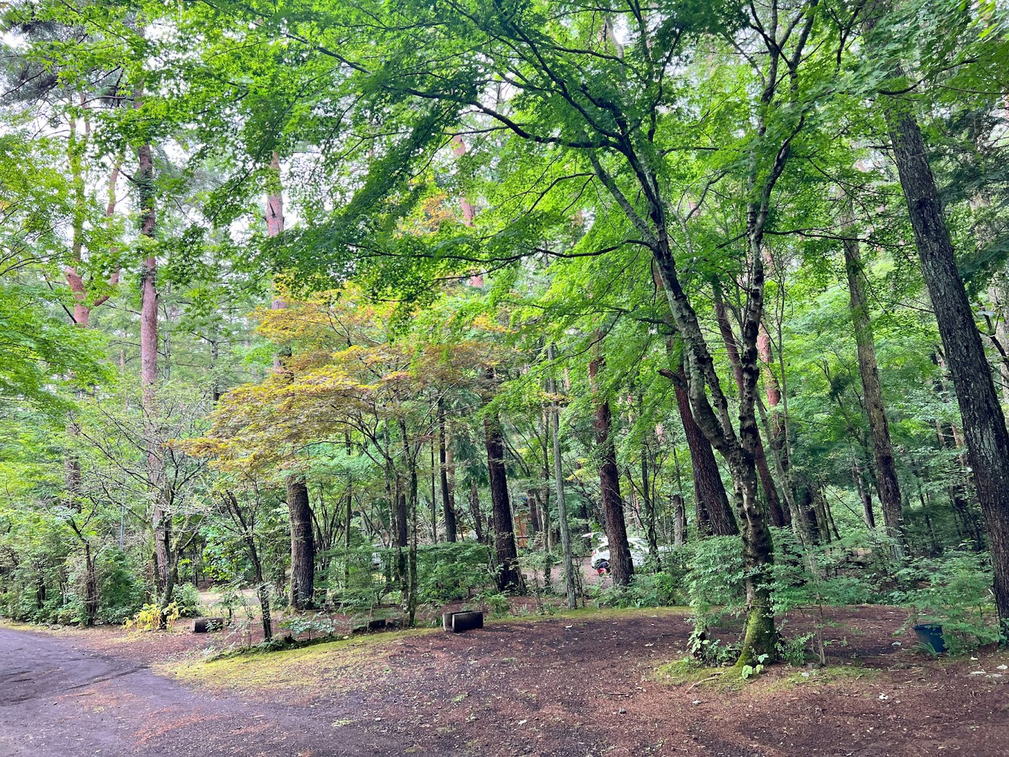 場内は木が茂っており、夏の厳しい日差しを遮ってくれます。隣のテントサイトとの距離も遠く、安心してリラックスできます。