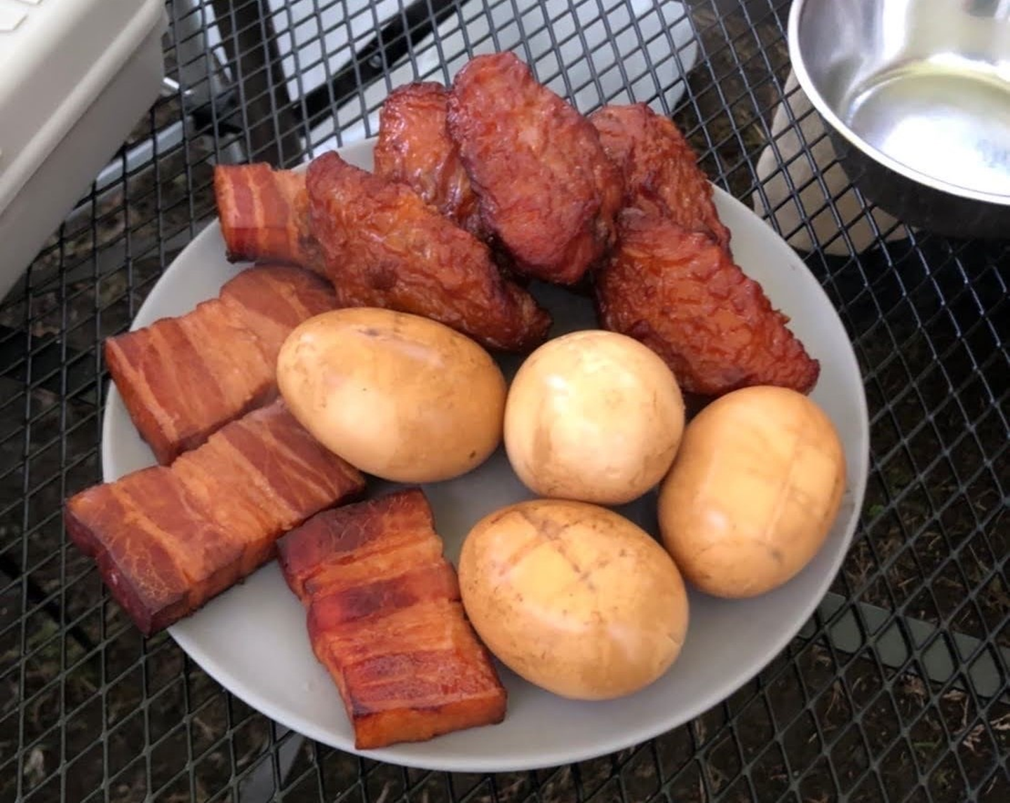 私に言わせれば、燻製すればなんでも美味しい!(笑)いつもキャンプの前日は半熟味玉を作って持っていき燻します。他にもスーパーでベーコンやチーズを購入して燻すと、お酒のおつまみには困りません!変わり種ではサ●ゼの辛味チキンを燻したり、牛乳を燻して燻製アイスにしたり。1週間仕込んだ熟成豚肉の燻製は本当に美味しかった…!