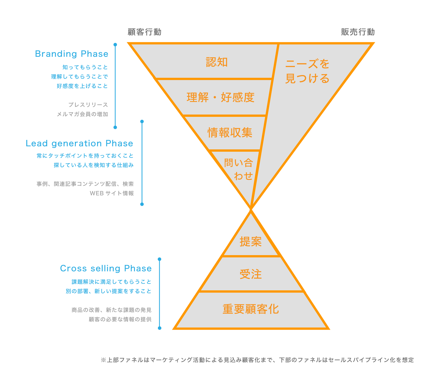 BtoBマーケティングファネル(顧客行動と販売行動)
