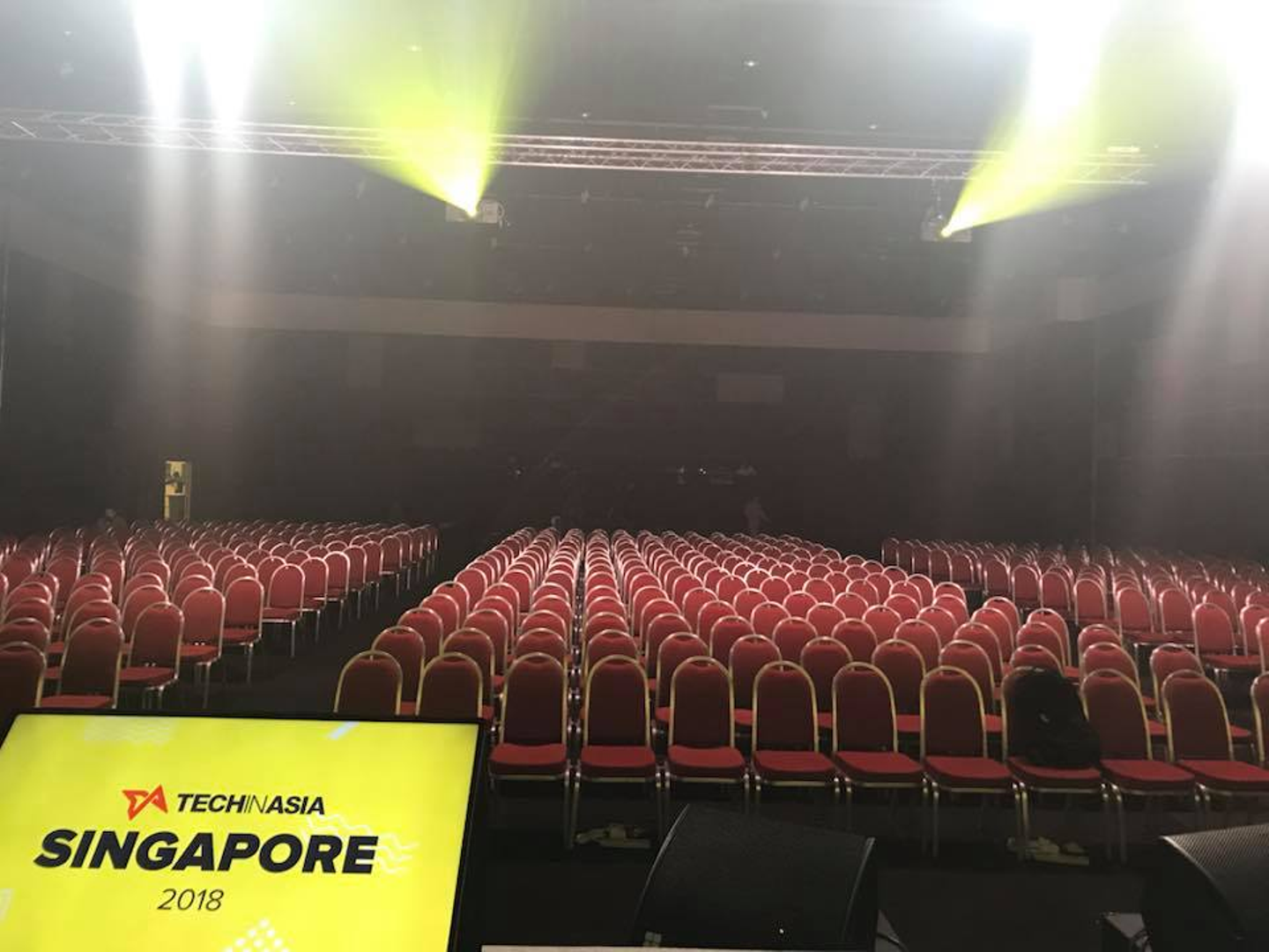 今回の会場、Suntech Convention & Exhibition Centreのメインステージ。こちらは入場前の会場の様子。キレイに配置された椅子、永遠に続いているかの様なイス。緊張しますな。