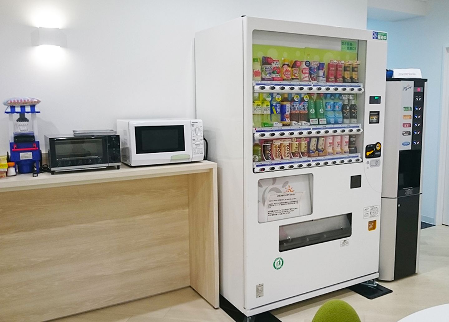 オフィスグリコや自動販売機、ウォーターサーバーがあります。