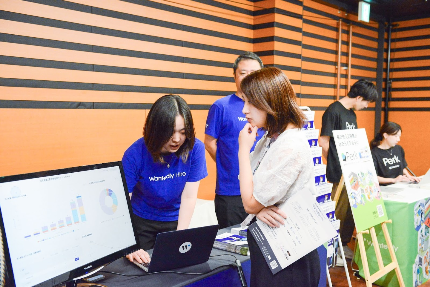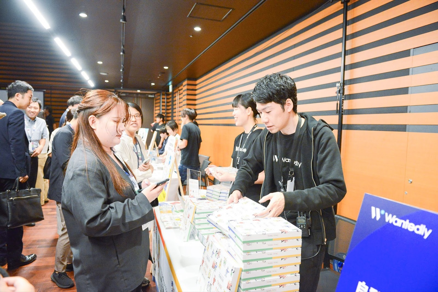さらに会場内には特設ブースを設置。主要プロダクトである、採用サービス「Wantedly」、福利厚生「Perk」、次世代型採用管理システム「Wantedly Hire」に加え、今回はユーザーコミュニティ「Lab W」やオリジナルボードゲーム「THINK×SYNC」のブースも出展しました。休憩時間やAfter Partyの合間に、多くの方が訪れました。