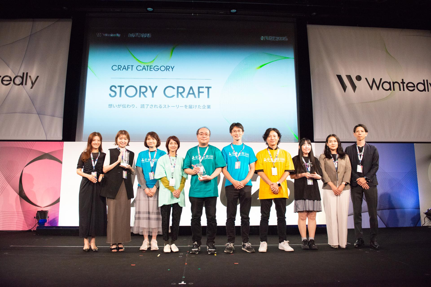 新機能の発表を受け、会場のボルテージが高まったところで、Wantedly登録企業の1年間の取り組みを称える表彰式「Wantedly Awards 2025」がスタートしました。表彰されるのは、Wantedlyの各機能における卓越した運用力を競う「CRAFT CATEGORY」、Wantedlyを通じて生まれた人と会社の出会いのエピソードを称える「EPISODE CATEGORY」、そして採用ブランディングや共感採用といった観点での総合力を称える 「TEAM OF THE YEAR」 の3つの部門です。ここからは受賞企業のコメントを一部ご紹介します。