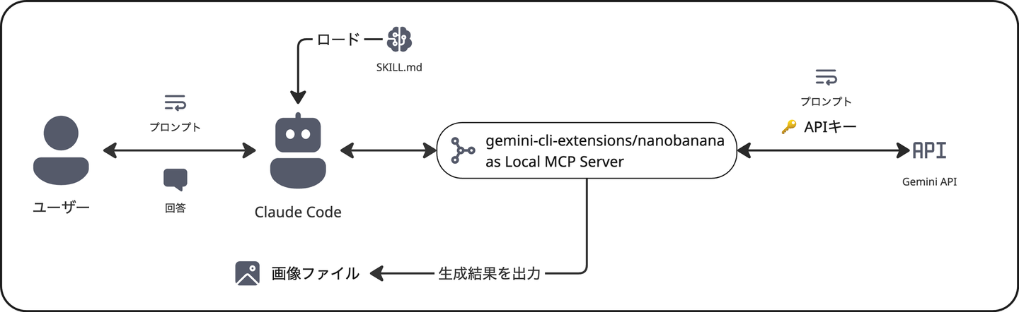 つまり、(Claude Codeのシステムプロンプトでコーディングに特化されていますが) 上図を踏まえると、例えば「Gemini Deep Research で調査した結果を分析させる」ことや、「Agent Skills を利用して プレゼンスライドを Markdown から生成する」 などコーディング以外にも使用できると言えます。