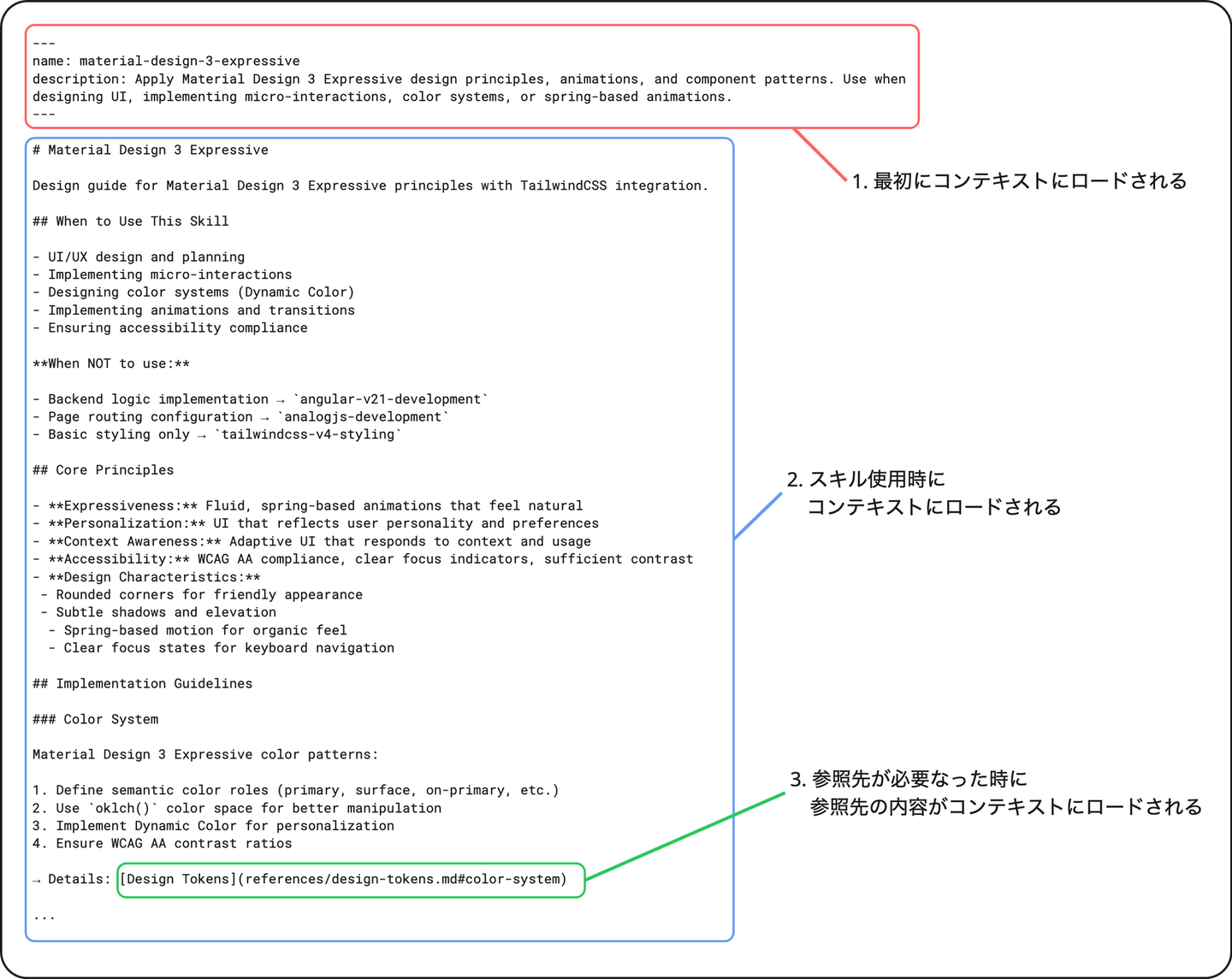 (*以下は Claude Code に生成させた自身のポートフォリオサイトで使用している Material 3 Expressive デザイン向けの SKILL.md です)
