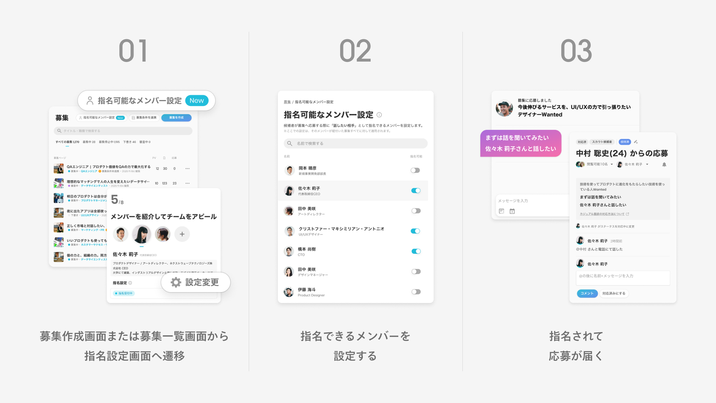 リリースに先立ち、2月26日よりWantedlyをご利用の企業様にて、指名リクエストを受け付けるメンバーの事前設定が可能になりました。この記事では企業様向けに、本機能に関する解説と、事前設定のご案内をいたします。