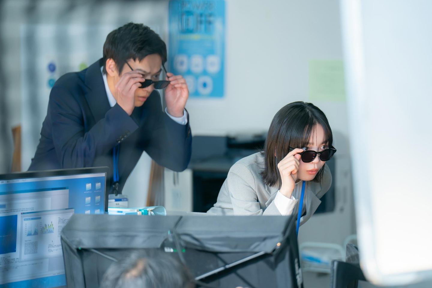 舞台はとある企業のオフィス。経歴上は「ピカピカの即戦力」人材を中途で採用します。面接を担当した現場の先輩社員は誇らしげでしたが、宮﨑さんがサングラスをかけると、履歴書や職務経歴書には書かれていない、面接で見抜けなかった「実態」が透けて見えてしまう…という、ストーリーです。