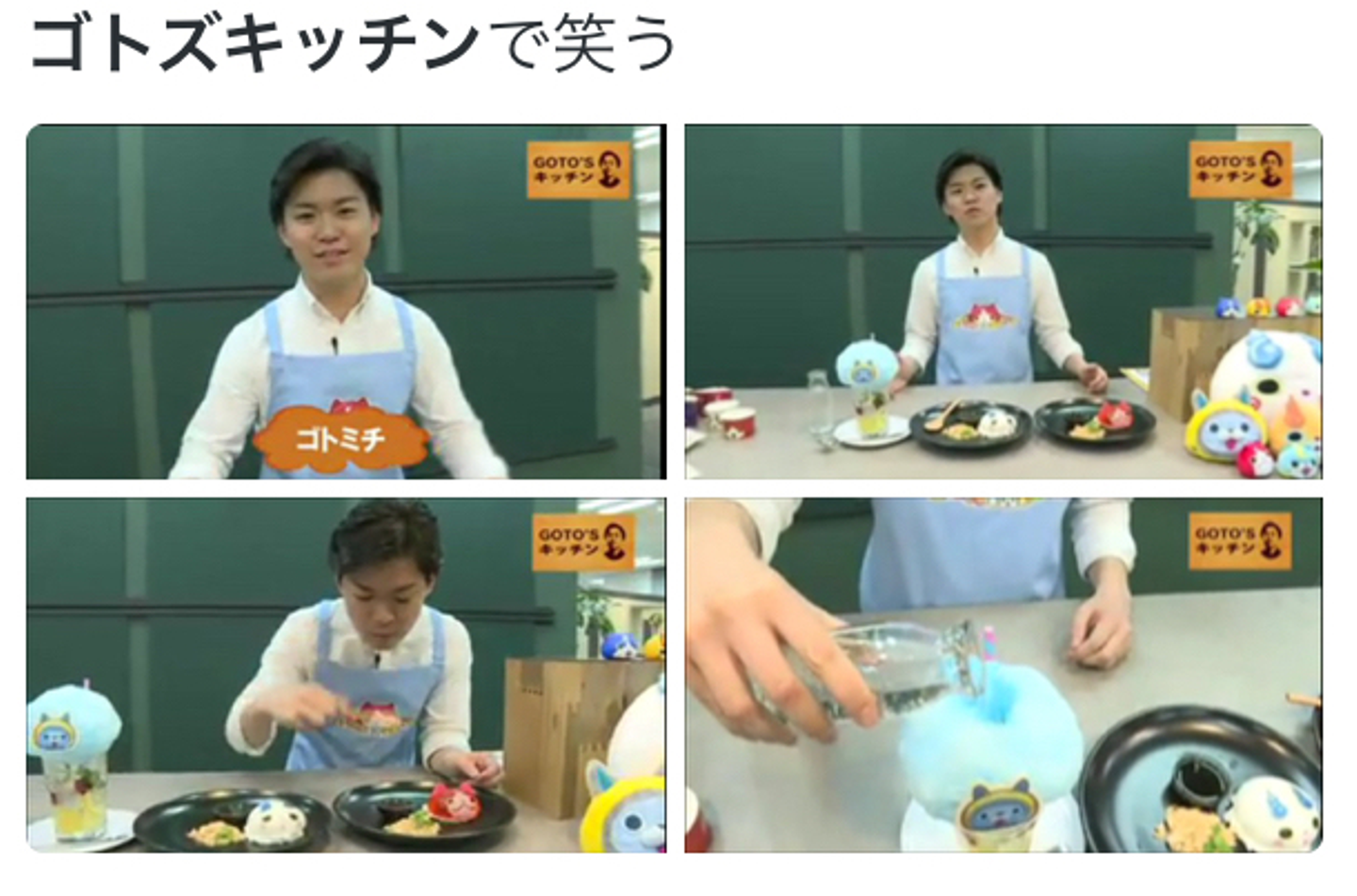 改めてもう一度子供向けのキャラクタービジネスをやりたいなと思い、今度は妖怪ウォッチが有名なレベルファイブに転職しました。最初の1年はかなり自由に働いていて、特に思い出に残ってるのが、当時流行っていた速水もこみちさんの「MOCO'Sキッチン」をパロディした「GOTO'Sキッチン」です。
