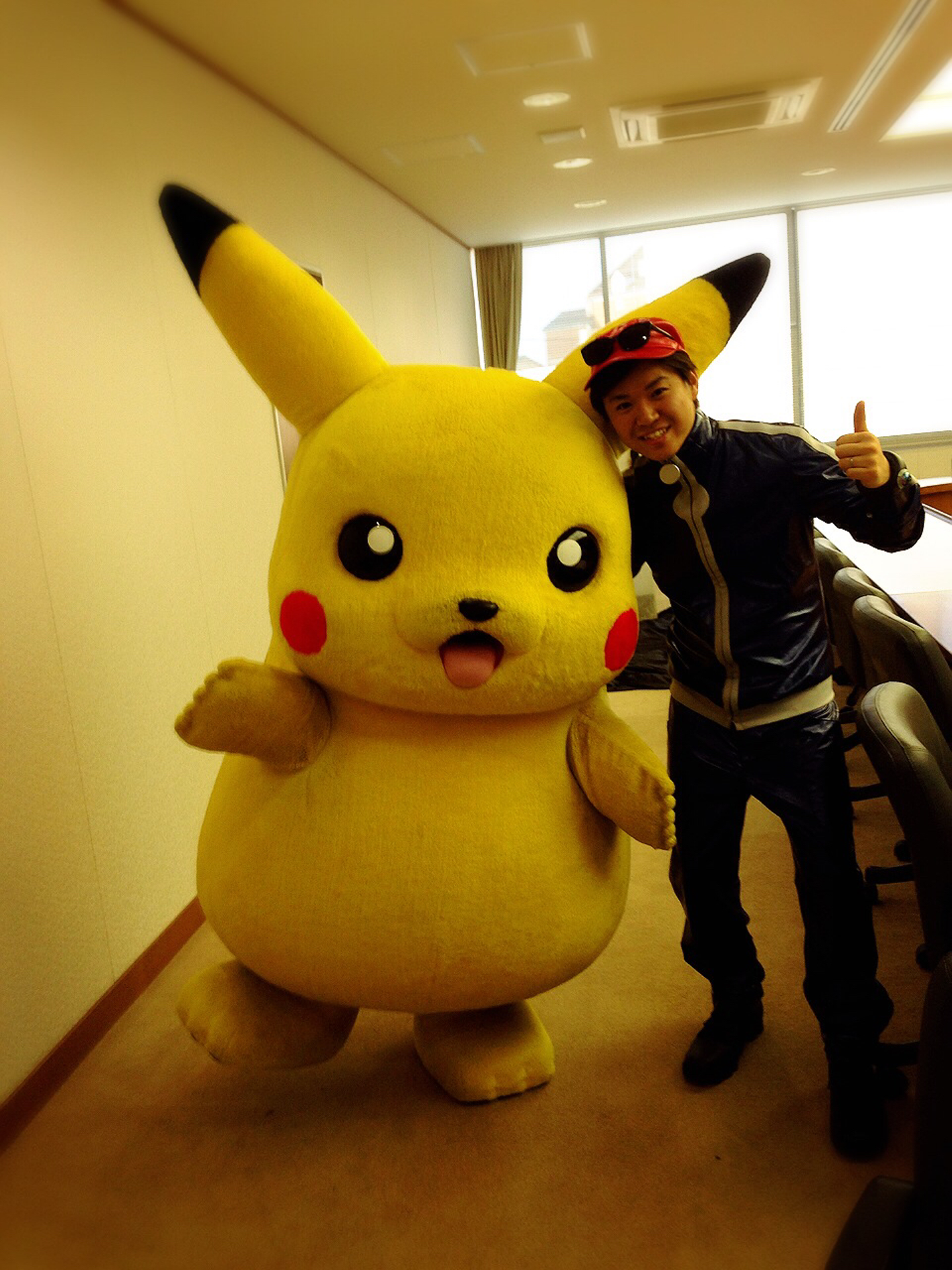 (ピカチュウと出演したイベントの控室。僕はポケモンマスターです)
