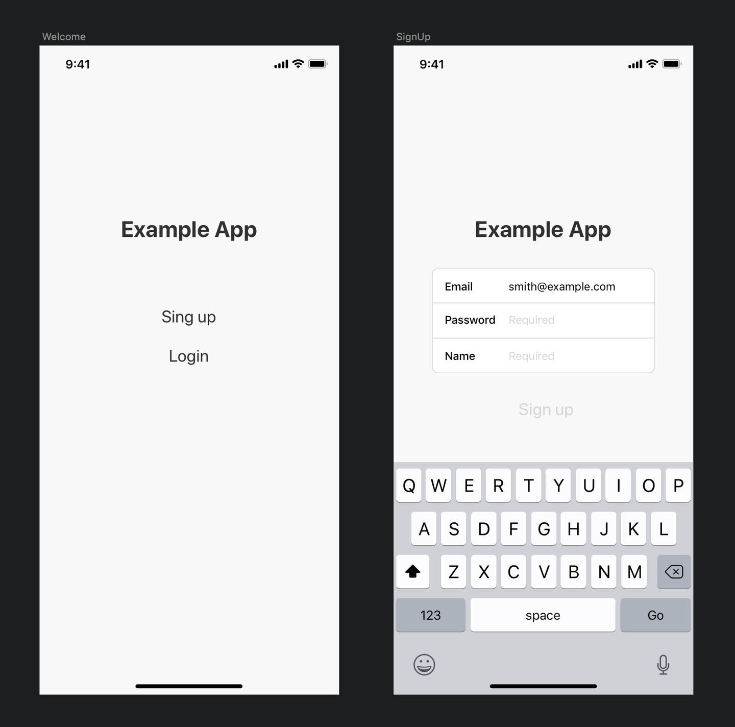 XCUITest を利用すると、UI の要素やその状態の取得、タップなどの操作をメソッドを呼ぶだけで簡単に実現することができます。しかし、テストケースごとに必要な要素を用意してシナリオを満たすようにコードを書いていくと、1つのテストケースが非常に長いコードになってしまうことがあります。たとえば、以下のような新規登録登録フローについて考えてみます。
