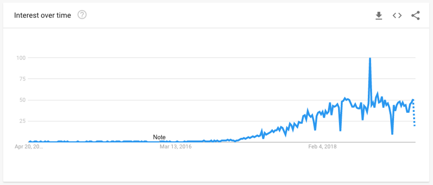 Google TrendでもRPAの認知度のアップは凄まじいですね。