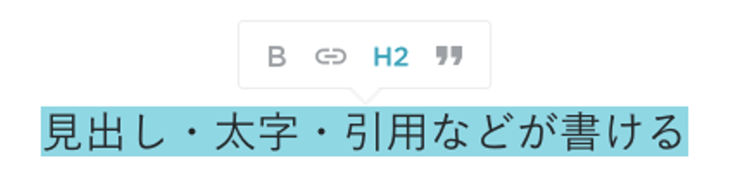 ブログ機能では、文字を装飾することが出来ます。今用意されているものは、「太字」「リンク」「見出し(h2)」「引用」の4種類です。