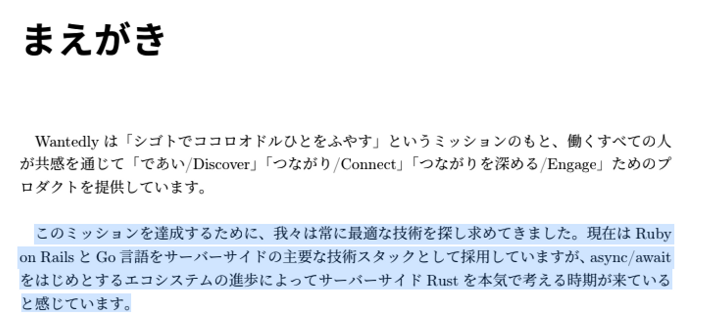 名刺アプリ Wantedly Peopleでも、マイクロサービスのひとつにRustが使われています。もしかしたら、サーバーサイドRustが導入される未来がくるかもしれませんね!