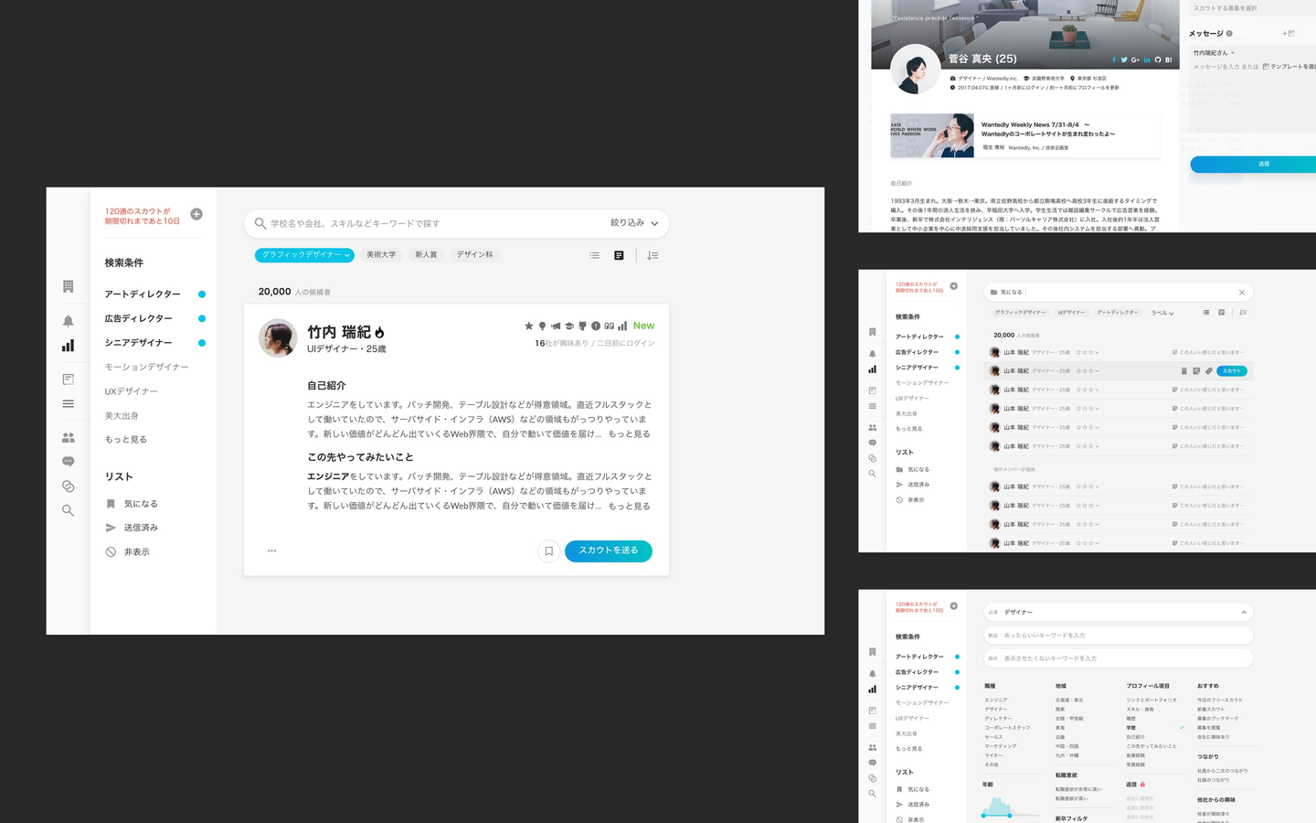 Wantedly Visit のスカウトUIを再構成。従来のUIにおける100以上の問題点を解決するとともに、共通デザインシステムを基にUI設計をモジュール化。将来の機能拡張や施策に対する柔軟性を確保した。