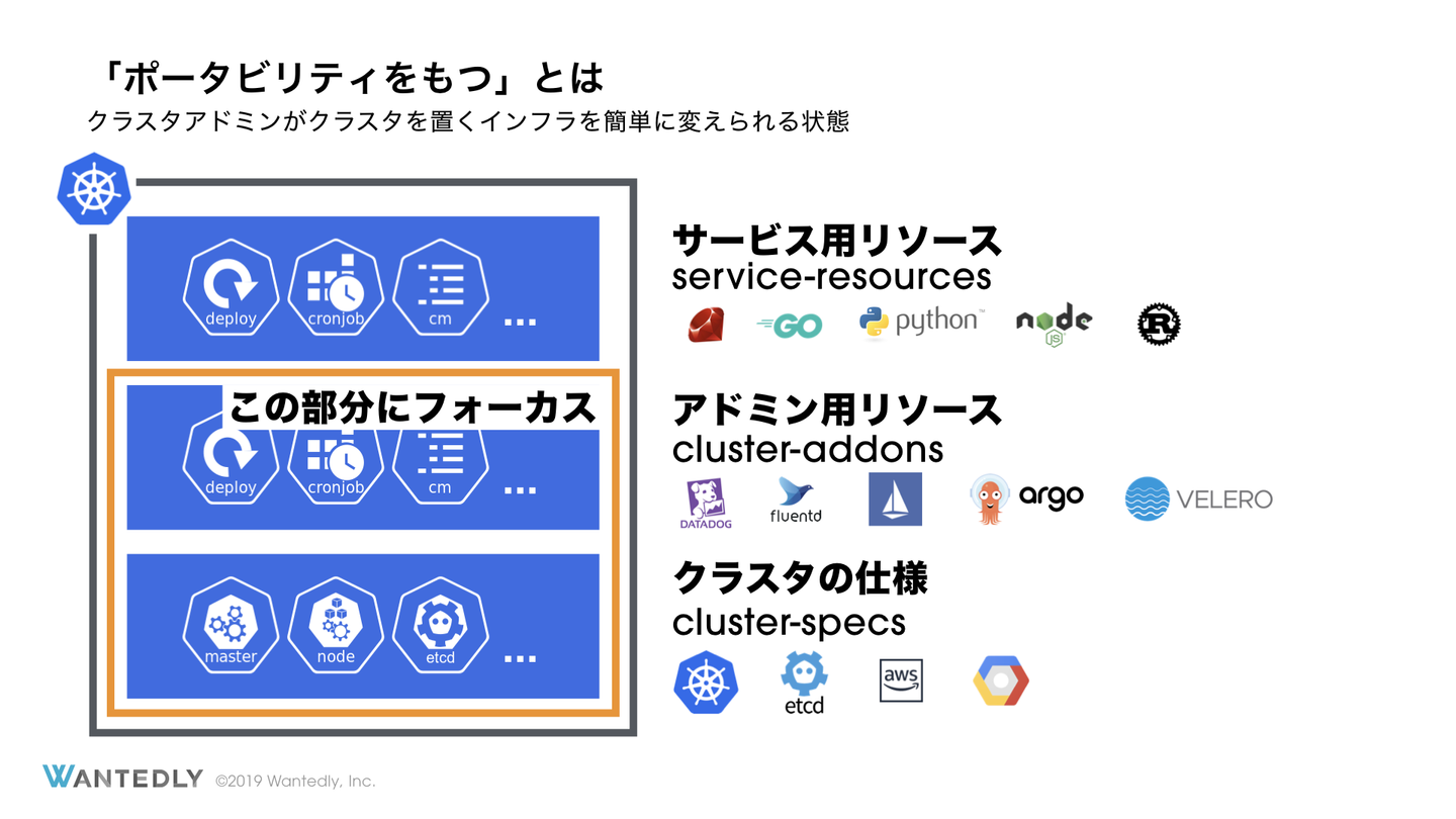 以下、「WANTEDLY TECH BOOK 7 - Kubernetes クラスタの移行から学んだクラスタのポータビリティの重要性と条件」の内容です。