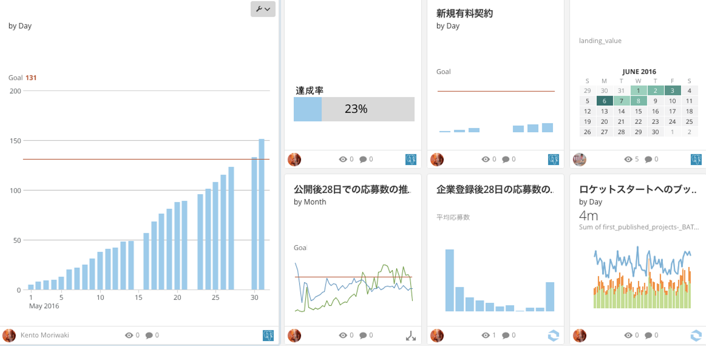 具体的には、Wantedlyのエンジニアは全員が自分の目標とするKPIのグラフを自分で作っています。作ったグラフはチームやチームを超えて共有されて、誰でも見たければ見れる状態が実現されています。
