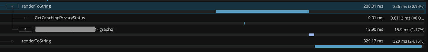 すごい重い renderToString が2回も実行されていますね? このつらい感じの箇所をちょっとだけ詳しく見てみます。